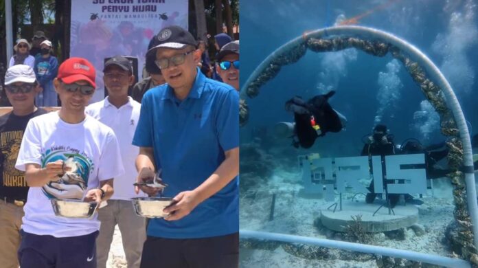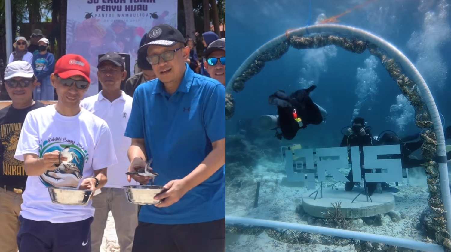 Selain melakukan transplantasi terhadap 100 karang, dalam kolaborasi aksi konservasi lingkungan tersebut, mereka juga melepasliarkan 50 ekor penyu hijau (Chelonia Mydas), di pantai Wambuliga, Desa Sombu, Kecamatan Wangiwangi.