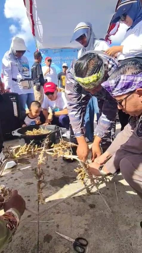 KABARWAKATOBI.COM, WANGI-WANGI-Bank Indonesia (BI) Perwakilan Sulawesi Tenggara (Sultra) berkolaborasi dengan Pemerintah Kabupaten (Pemkab), Balai Taman Nasional dan Forum Komunikasi Pimpinan Daerah (Forkopimda) di Wakatobi melakukan transplantasi karang di Marina Togo, Kecamatan Wangiwangi.