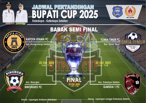 Turnamen Bupati Cup Kaledupa bukan hanya sekadar ajang sepak bola, tetapi juga menjadi momentum untuk mempererat tali persaudaraan antar pulau di Wakatobi. Siapakah yang akan melaju ke babak final. ADM